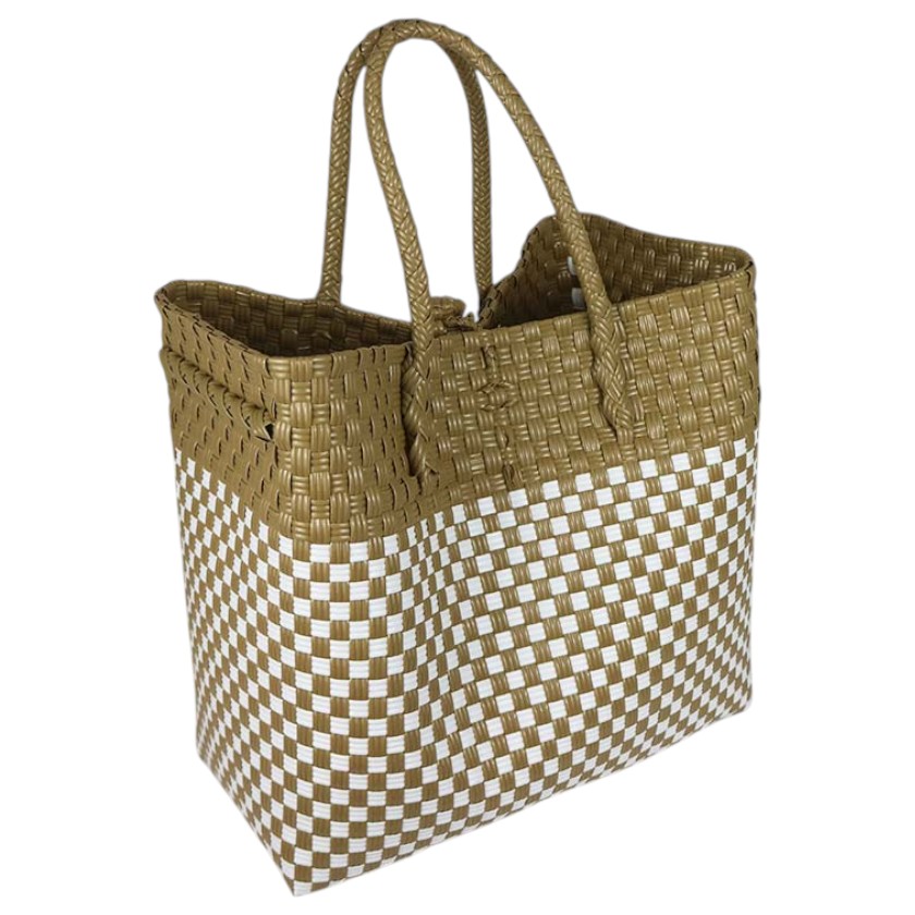 BAG PENJY NATURAL WITH LEATHER HANDLES & TASSLES