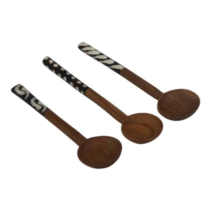 WOOD SPOONS DIPPER 6″ WITH BONE INLAY BATIK