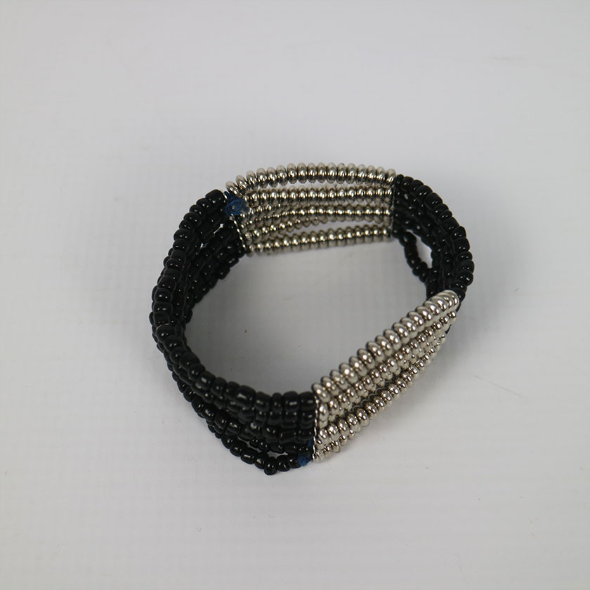 / BRACELET MULTIBEAD BLACK 6 LINE WITH SILVER