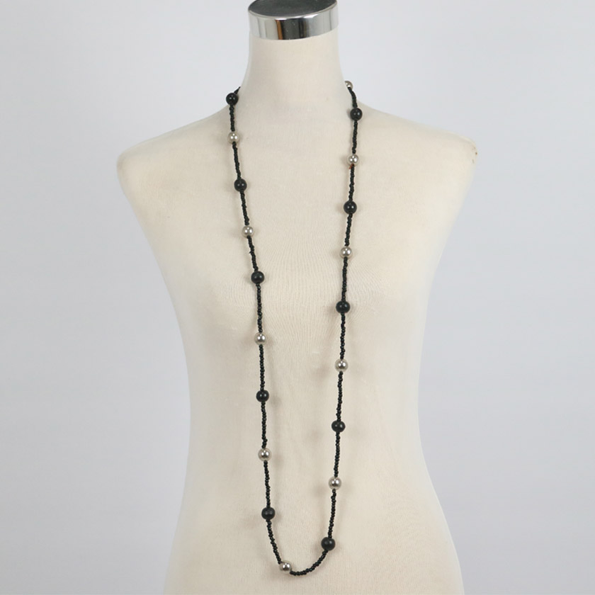 / NECKLACE BLACK & SILVER SINGLE WITH BALL LONG