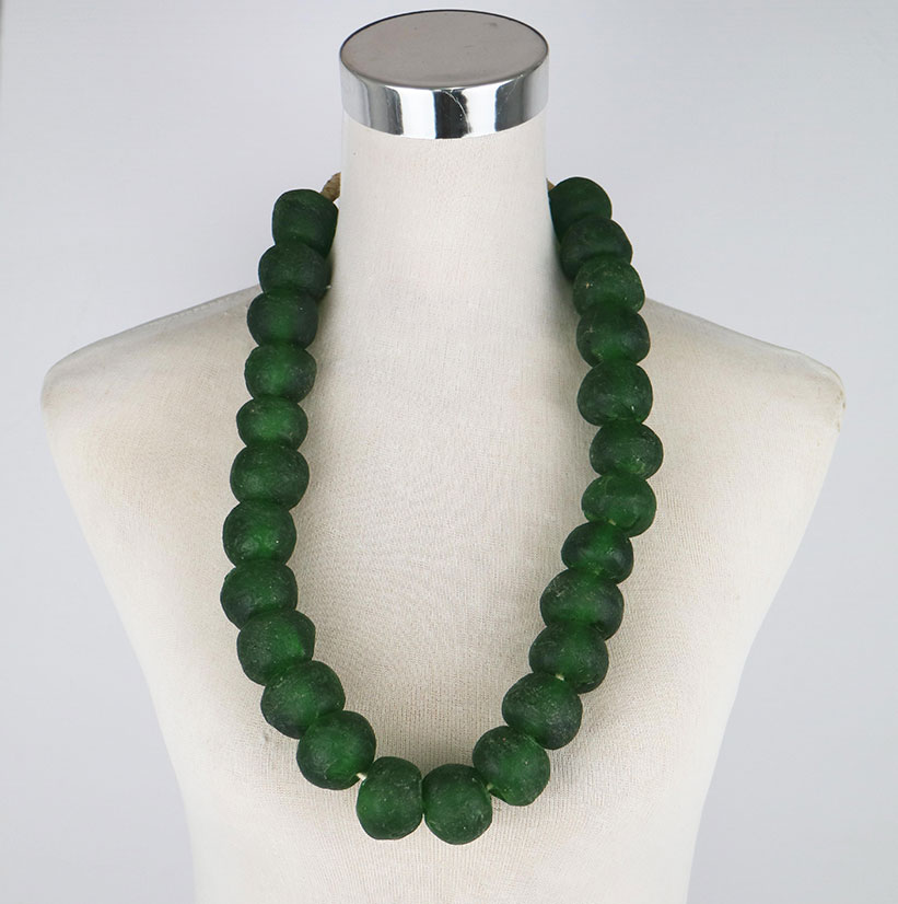 NECKLACE GLASS BEAD CHUNKY DOUBLE EMERALD