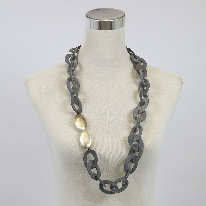 / NECKLACE HORN LINK WITH PEBBLE