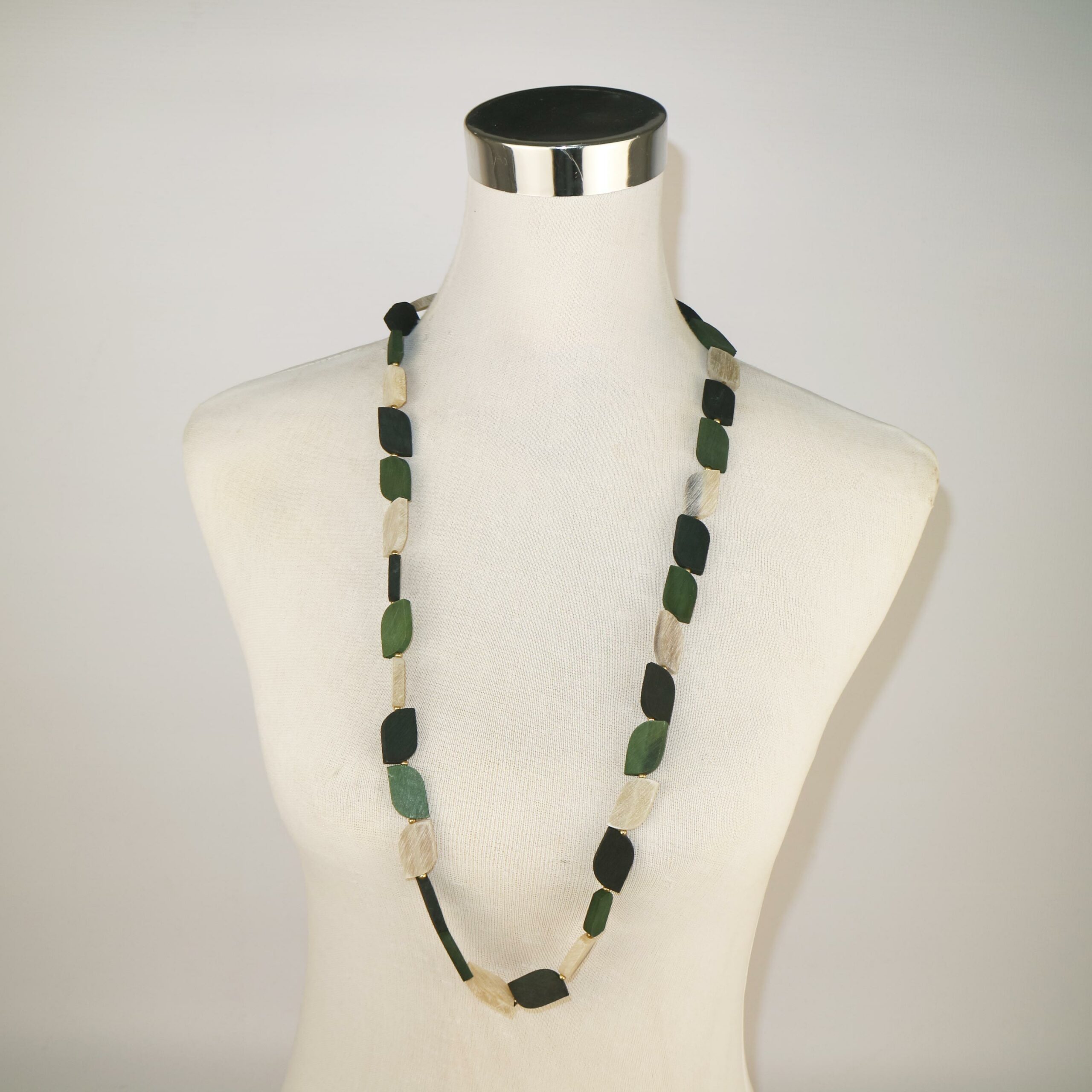 / NECKLACE HORN NATURAL & KHAKI LEAVES