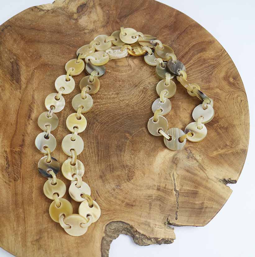 NECKLACE HORN ROUND SMALL DISKS WITH LINKS