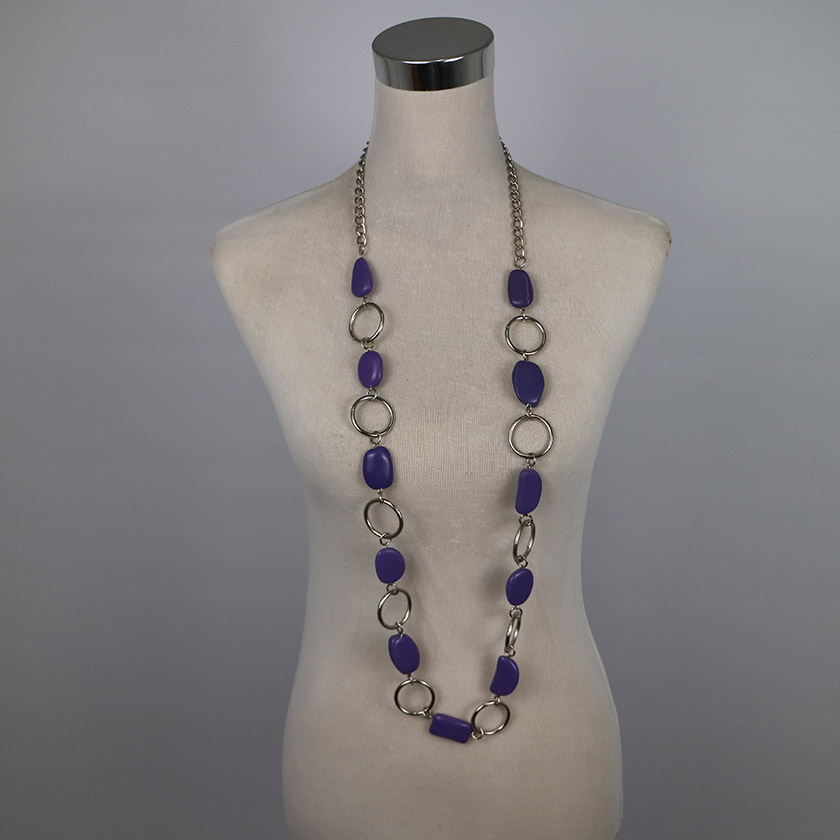 NECKLACE METAL STONE PURPLE