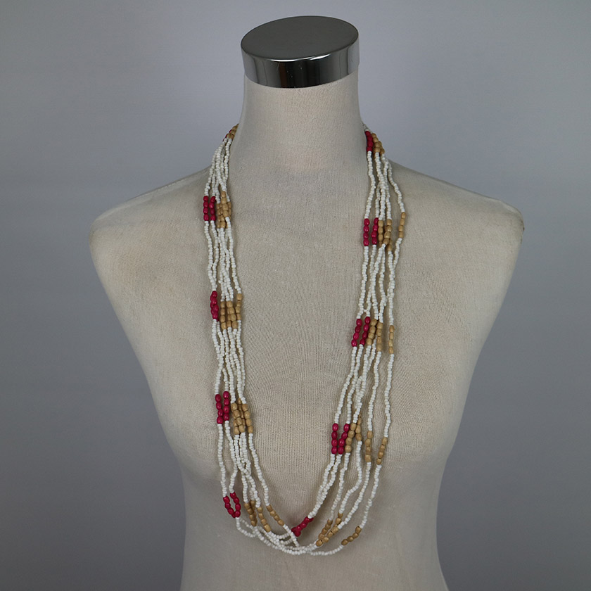 / NECKLACE MULTI 6 LINE WHITE WITH PINK SONO