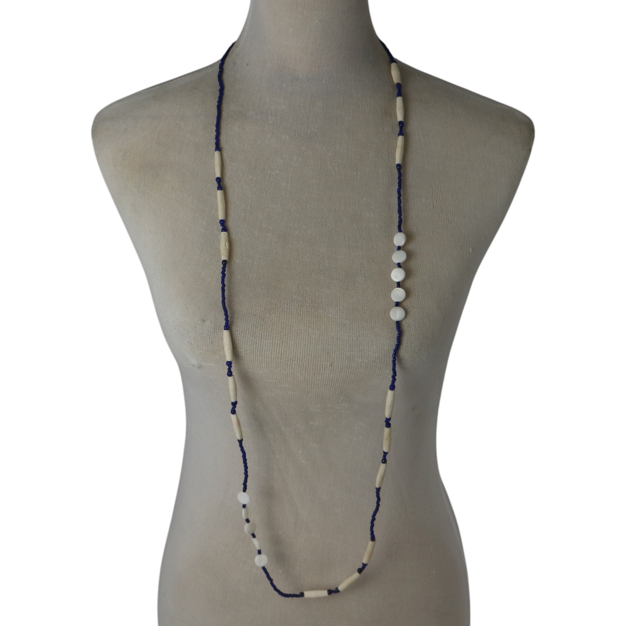 / NECKLACE SHELL BUTTON CREAM BLUE BONE PIPE