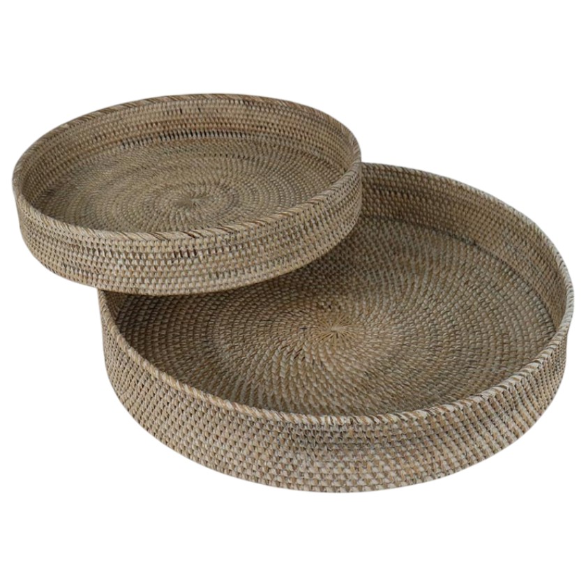 RATTAN TRAY ROUND SET OF 2