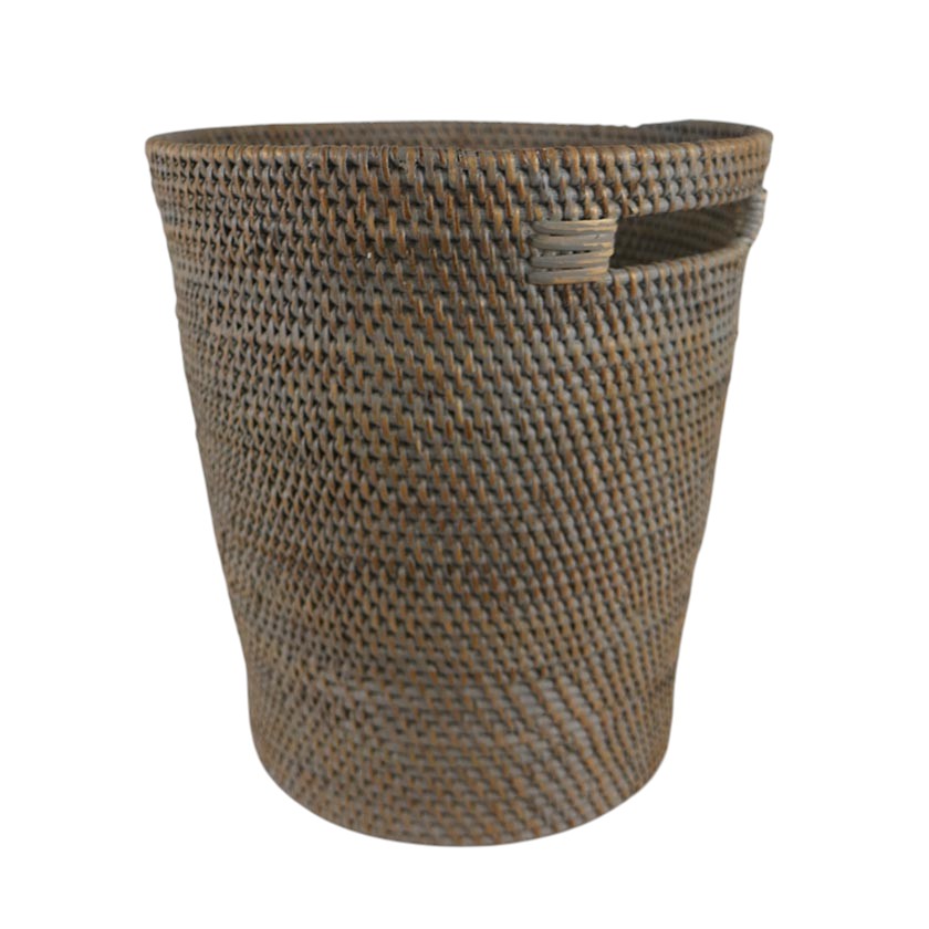 RATTAN WASTEPAPER BASKET SMALL WITH HANDLES GREY