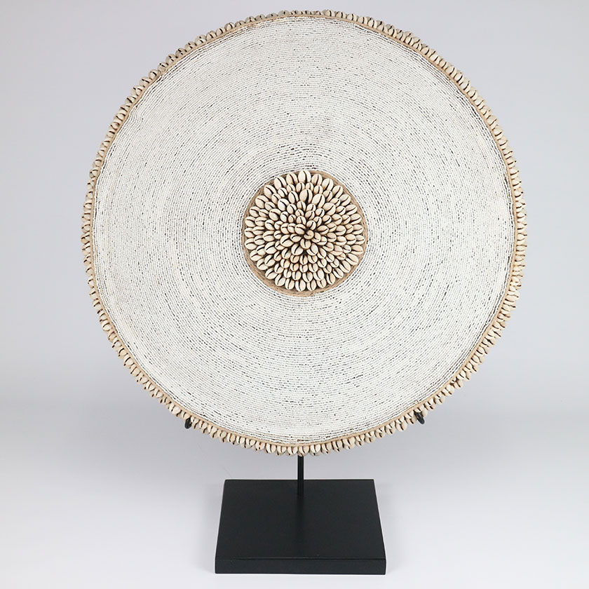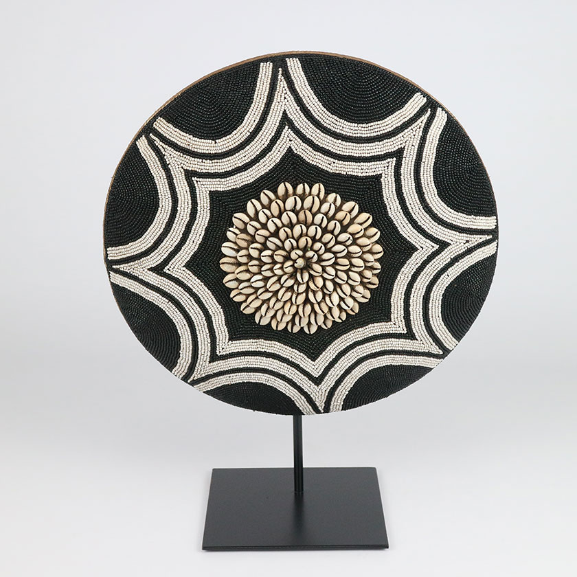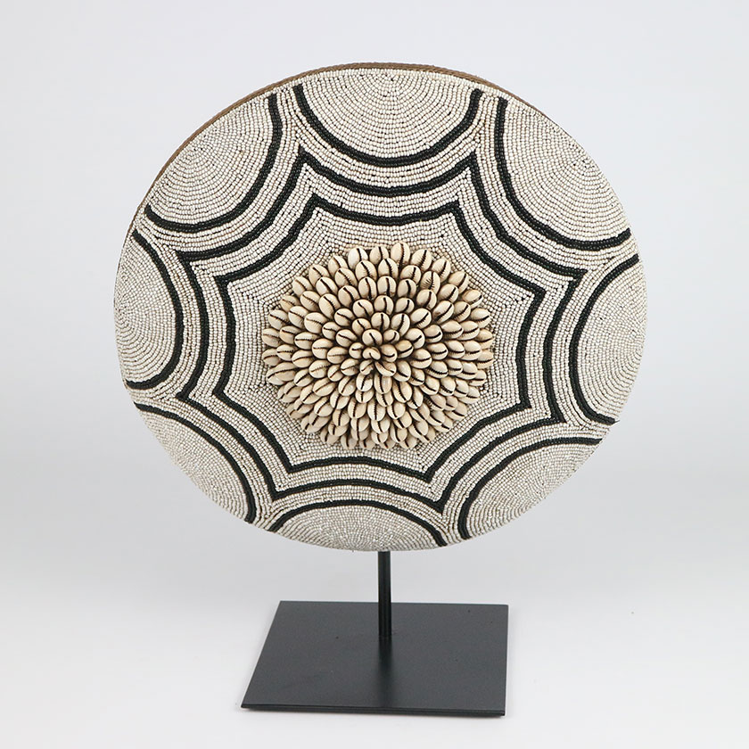 WOOD BEADED SHIELD ON STAND